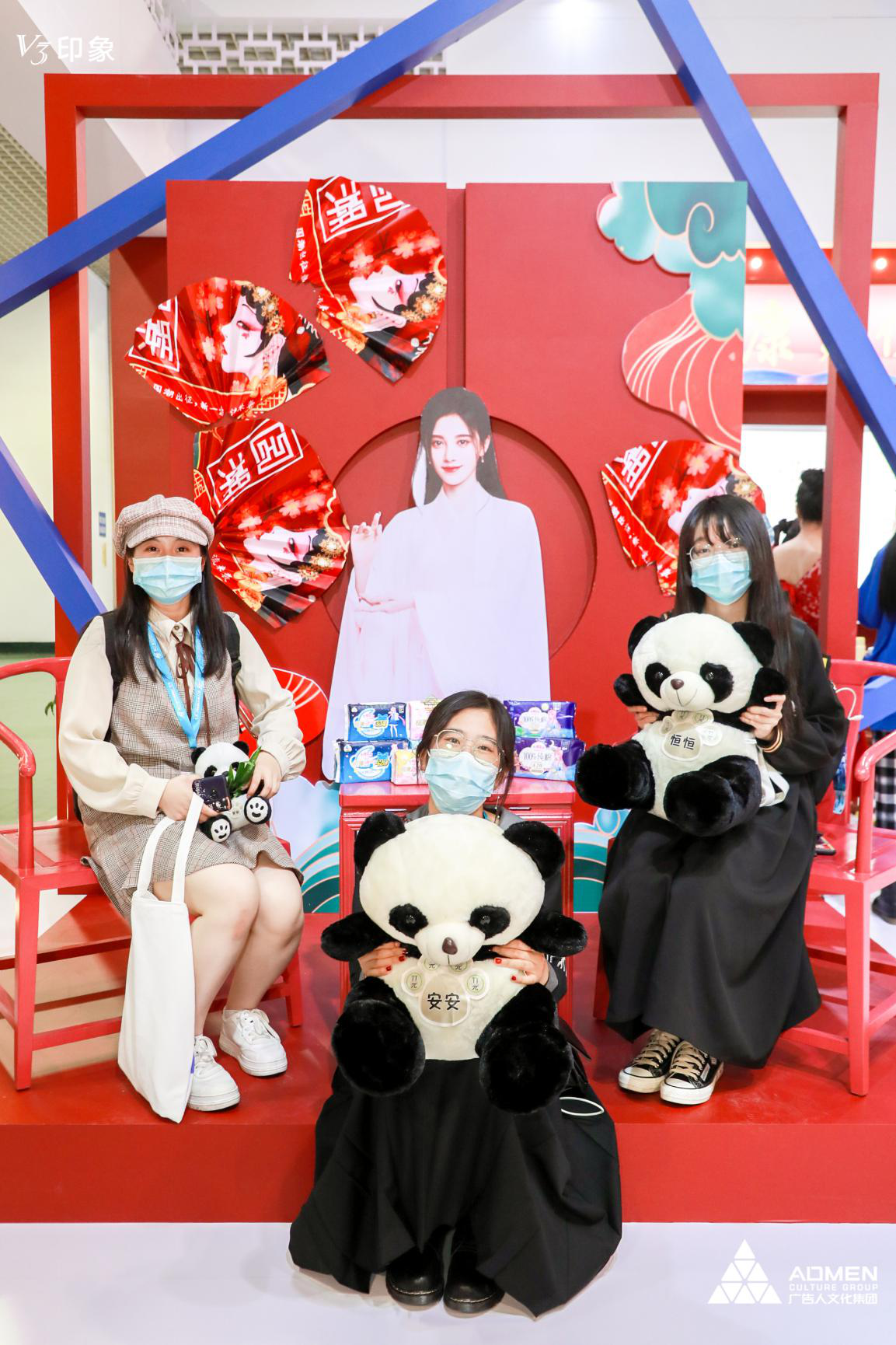 果冻传媒原创集团展位的正红布景极具特色,吸引了众多国风爱好者前来打卡,不少汉服小仙女都被熊猫玩偶萌翻了,纷纷合影留念。